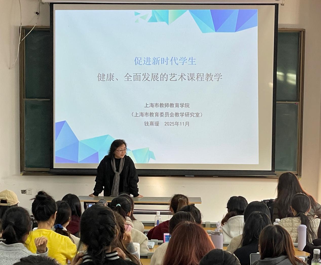 围绕舞蹈学国家级一流本科专业高水平建设项目的需求,为实现高质量舞蹈人才培养目标,2025年11月20日下午,舞蹈系特邀上海市教师教育学院(上海市教育委员会教学研究室)中学艺术、高中音乐教研员、上海市特级教师、上海教育学会中学艺术教学专业委员会副主任兼秘书长钱熹瑗老师,于徐汇校区一教207教室开展题为《促进新时代学生健康、全面发展的艺术教学研究》的学术讲座。