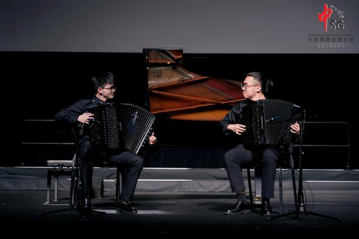 本届比赛颁奖晚会暨闭幕式在新加坡星宇表演艺术中心举行。值得一提的是,封景锐与施乾浩同学作为本届比赛获奖选手代表,登台演绎了手风琴二重奏《吉普赛女孩》,展现出扎实的音乐素养与生动的舞台表现力,充分彰显了上海乃至中国手风琴艺术在国际舞台上的良好形象与综合实力。