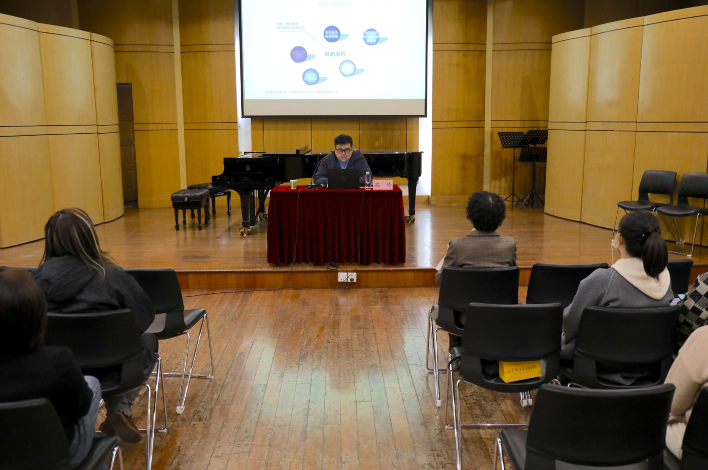 讲座现场,高琦副处长紧密结合高校财务政策要求与音乐学院教学、科研工作实际,聚焦教职工高频办理的财务业务,展开全面细致的实操讲解。围绕公务卡使用规范、差旅费管理细则两大核心内容,他逐条梳理政策要点、明确办理标准,对日常报销中易出错、易遗漏的环节重点提醒;针对线上报销办理需求,现场对汇联易网上报销系统进行分步实操演示,从单据规范填写、附件完整上传,到流程审批提交、进度查询,全程手把手教学,细致解答操作疑问,确保教职工听得明白、学得透彻、熟练运用。