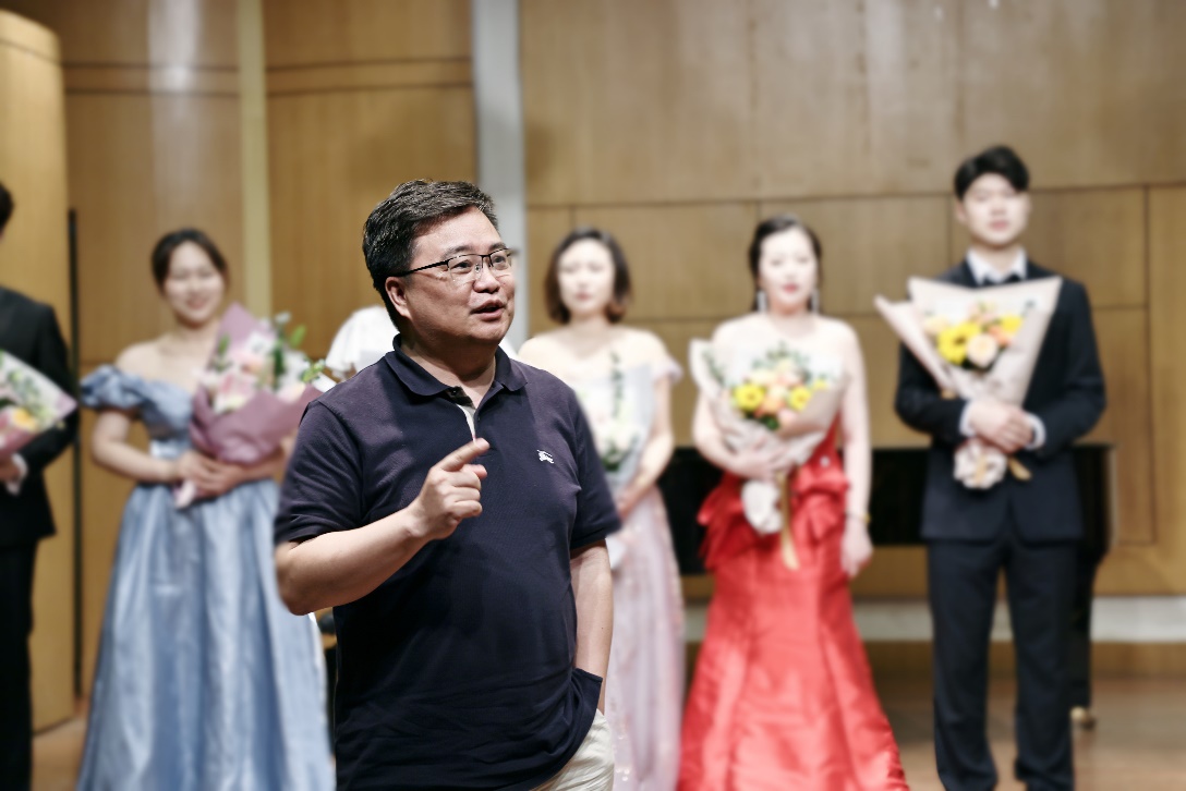 6月5日晚,在我校音乐学院小音乐厅,音乐学院声乐系副主任、硕士生导师郭娉婷副教授带领她所教的全体在读本、研学生共同为大家带来了一场自弹自唱、重唱实践音乐会。音乐学院院长施忠教授、院党委书记高亭、声乐系主任周进华教授和声乐系的教师等莅临指导观摩。