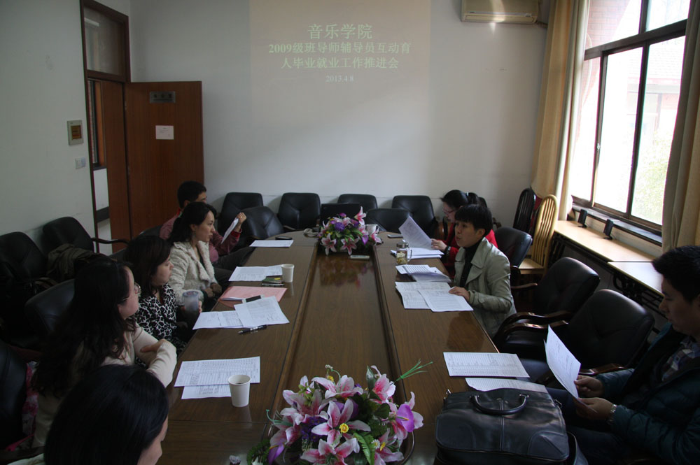 4月8日下午,音乐学院召开毕业班班导师辅导员互动育人学业就业工作推进会,学院党总支副书记张玮老师、2013届7位班导师和辅导员唐钧老师分别出席了此次会议。