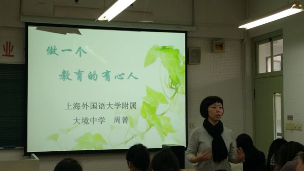 2014年11月12日,音乐学院邀请上海外国语大学附属大境中学的周菁老师在教苑楼D402教室开展了一场题为“做一个教育的有心人”的讲座。我院2013级本科音乐学、音乐表演专业部分同学参加了此次讲座。