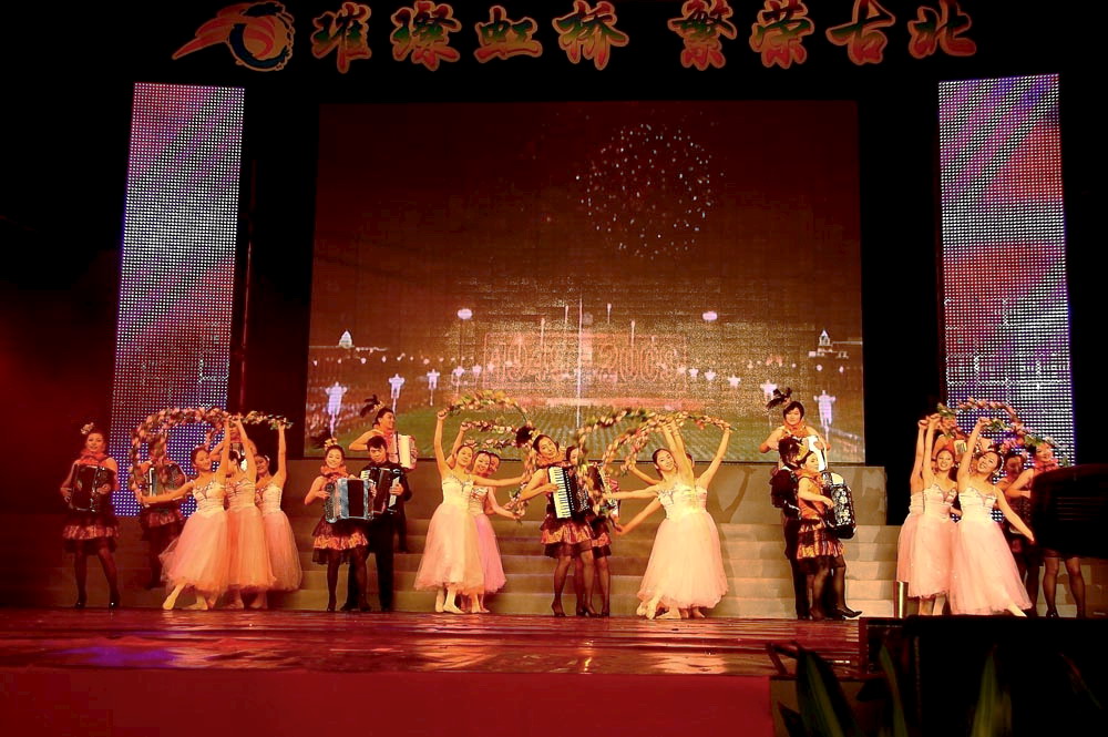 晚上,手风琴乐团和舞蹈团的同学不顾辛劳,在王从余、王雨坤等老师的带领下赴上海国际体操中心,参加第十一届中国上海国际艺术节群文活动暨2009虹桥文化之秋艺术节闭幕颁奖晚会的演出。他们要为晚会献上压轴曲目《地球是个美丽的圆》。这也是上师大音乐学院现代流行手风琴乐团和舞蹈团的首次联袂演出。之前,根据晚会导演的要求,在短短一星期内,手风琴乐团将这首歌曲重新编曲,既保留了歌曲朗朗上口的旋律,又加入了能体现流行手风琴特色的各种变奏。舞蹈团的加入,使整个节目更加富有生机。经过王从余和苗小龙老师的精心策划和编排,再加上同学们连续的刻苦排练,演出取得了圆满成功!并得到了社会各界的一致认可与好评。