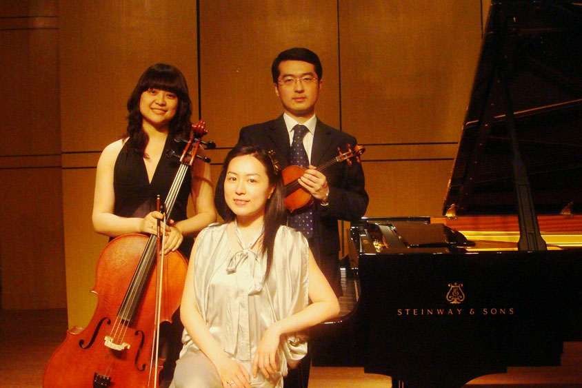音乐会的开场曲目是被舒曼称为“贝多芬之后最伟大的钢琴三重奏”的门德尔松D小调三重奏,第一乐章用了一个相对偏慢的速度,这使得大提琴奏出的伤感主题显得忧愁而沉重,却不失门德尔松的优雅与绅士。第二乐章行板像是一首无词歌,带有典型的门德尔松式的旋律与和声,大小两把提琴像是二重唱一般,十分唯美。接下来的两个乐章有着极大的演奏难度,三位演奏家配合得十分默契,把其中的轻盈,幽默与热情表现得非常到位。一曲终了,掌声如雷。