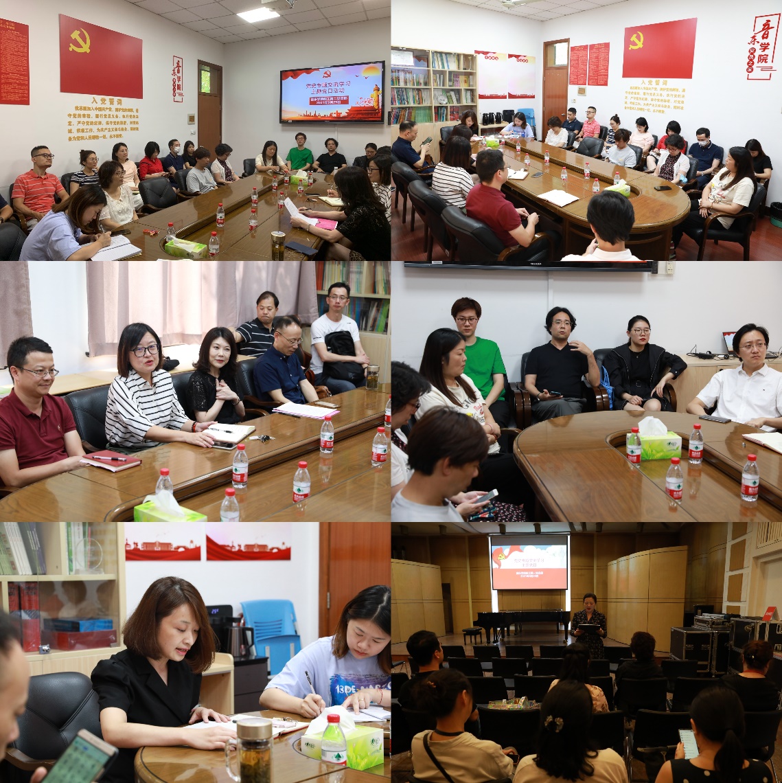 根据校党委的统一要求和安排,9月29日下午音乐学院教工党支部、学生党支部开展了“党史专题交流学习”主题党日活动。本次主题党日以“学党史、悟思想、办实事、开新局”为主题,在深入学习习近平总书记“七一”重要讲话精神的基础上,围绕习近平《论中国共产党历史》《中国共产党简史》《习近平新时代中国特色社会主义思想学习问答》《毛泽东邓小平江泽民胡锦涛关于中国共产党历史论述摘编》等党史学习教育必读书目来开展专题学习交流会。 教工第一党支部于小音乐厅开展主题党日活动,声乐系邓月丽同志、器乐系田晔同志做重点发言。邓月丽同志以“学习习近平总书记关于师德师风重要论述的体会”为题,围绕习近平总书记提出的四有好教师要求,讲述了个人在教学工作中的体会。她表示,扎实的知识功底、过硬的教学能力、勤勉的教学态度、科学的教学方法是教师的基本素质,其中知识是根本基础。田晔同志从“个人学习生涯中遇到的好老师”为主题,讲述了自己从事教学工作至今三十二年来的标杆老师:小学老师陈蓓蕾(唱游教学创始人),中学老师曹云芬和大学老师陈弃疾。她们全身心投入教学工作,不仅爱教学更爱学生,具备了“四有好教师”的标准。她表示,将传承“四有好教师”的优秀品质,用真心和诚心开展教学和各项工作。 教工第二党支部于党员之家开展主题党日活动,理论系孙红杰教授、组织员俞莉娴同志做重点发言。孙红杰同志梳理了党章修订的历史,总结了党章修订的鲜明特点:与时俱进与自我反思意识。并建议将党史学习融入科研工作,找准科研工作的核心价值观。俞莉娴同志表示,百年党史是一部马克思主义不断同中华优秀传统文化相结合的历史。学校是优秀传统文化教育的主渠道、主阵地。在开展党员发展、党员教育的工作中,要积极探索党员教育培训工作的新机制、新载体,引导青年大学生热爱传统文化、坚定文化自信。