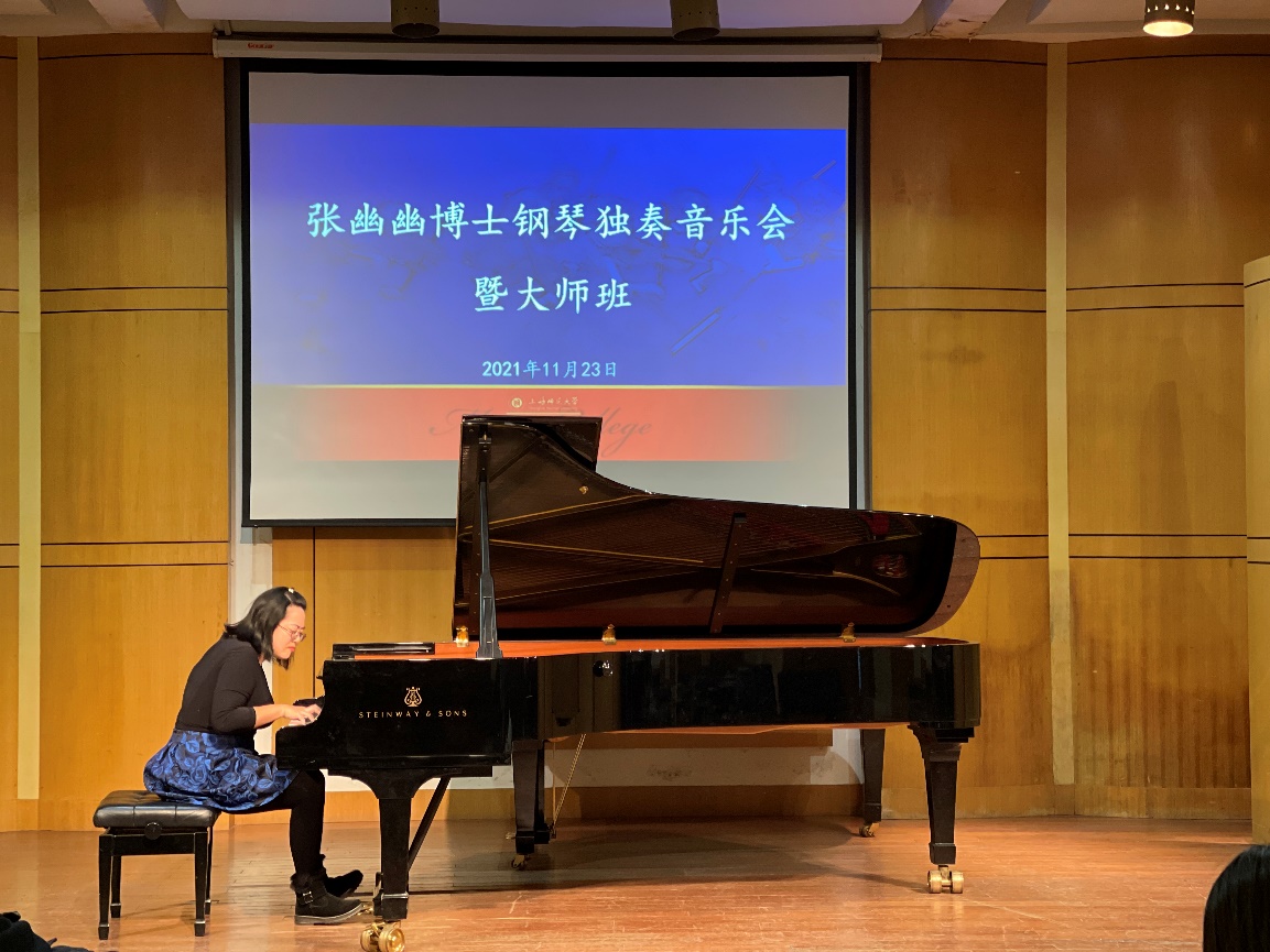11月23日,著名钢琴家,张幽幽博士受邀来我院举办钢琴独奏音乐会和大师班,讲座吸引了我院钢琴系众多教师和本、硕学生前来参加。