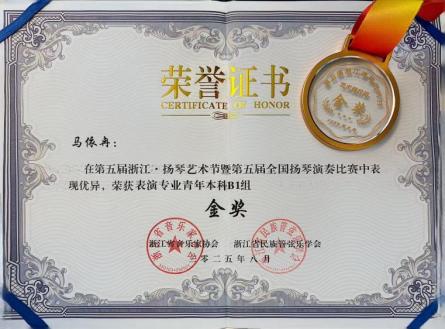 2022级音乐学(师范)2班马依冉,获专业青年本科B1组金奖,
