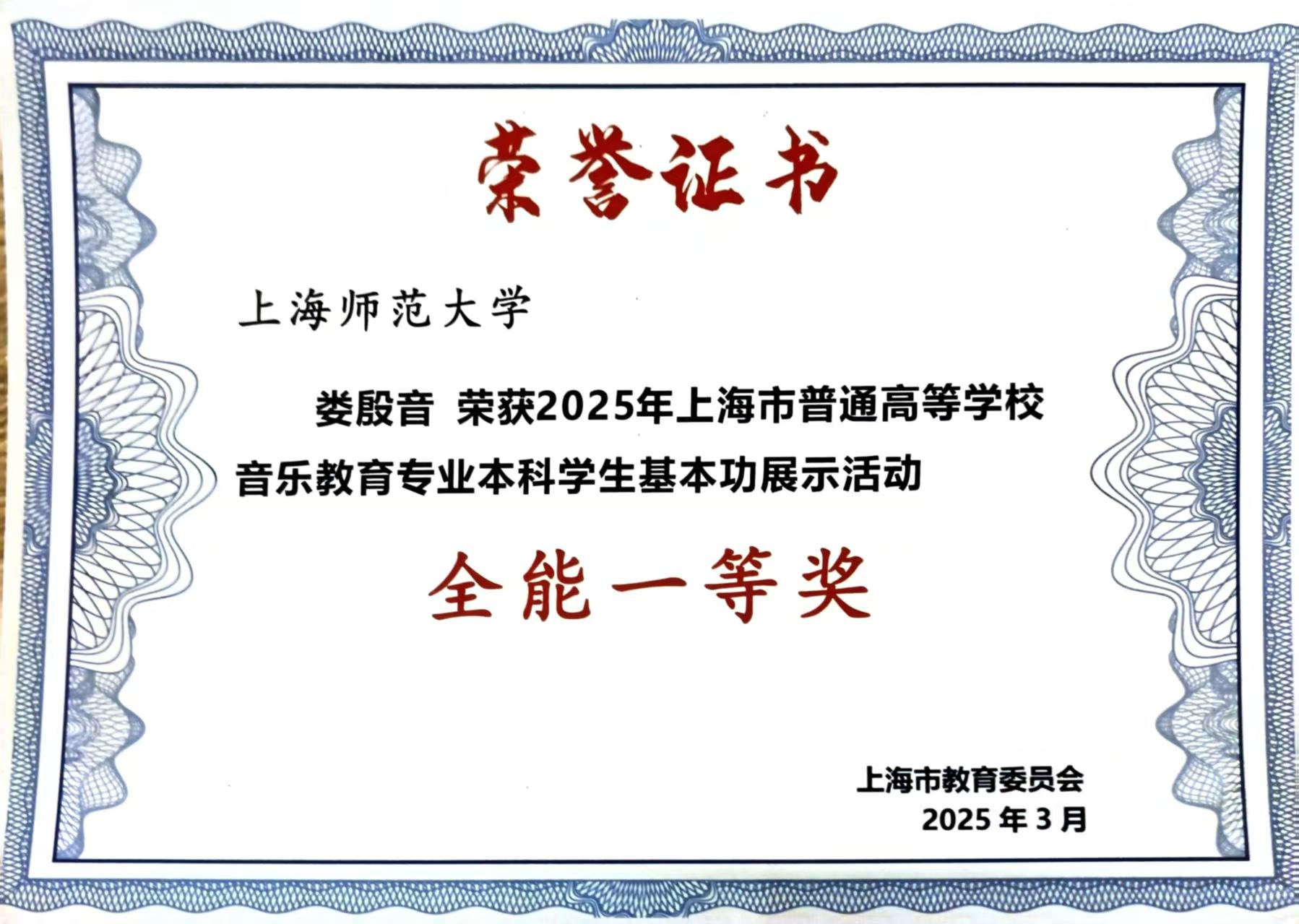 2024级音乐学(师范)1班缪涵滢,获专业青年本科B2组金奖。